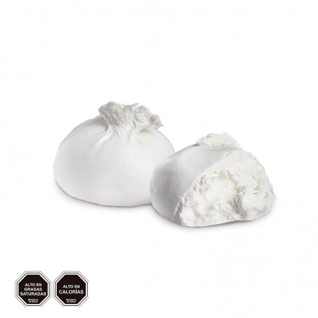 Queso fresco de masa hilada relleno de stracciatella o ricotta, elaborado con leche de vaca. Tiene forma de saquito y la “piel” muy fina le confiere el típico aspecto redondo y liso. El saco encierra una masa de stracciatella o ricotta, suave y dulce